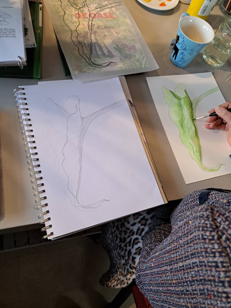 De tekenmiddagen werden tot de allerlaatste seconde gebruikt (nog even afmaken) en daarna ging iedereen met een (soms nog nat) werk naar huis. Ik had gelijk weer beelden van vroeger in mijn hoofd waar ik als kleutertje met mijn tekening onder mijn arm naar huis rende om te laten zien wat ik had gemaakt. Ook als volwassene doe ik dat lekker nog steeds. Mijn man moest verplicht even komen kijken wat ik gemaakt had. Ik hoop dat de clubleden ook zo blij naar huis gingen.