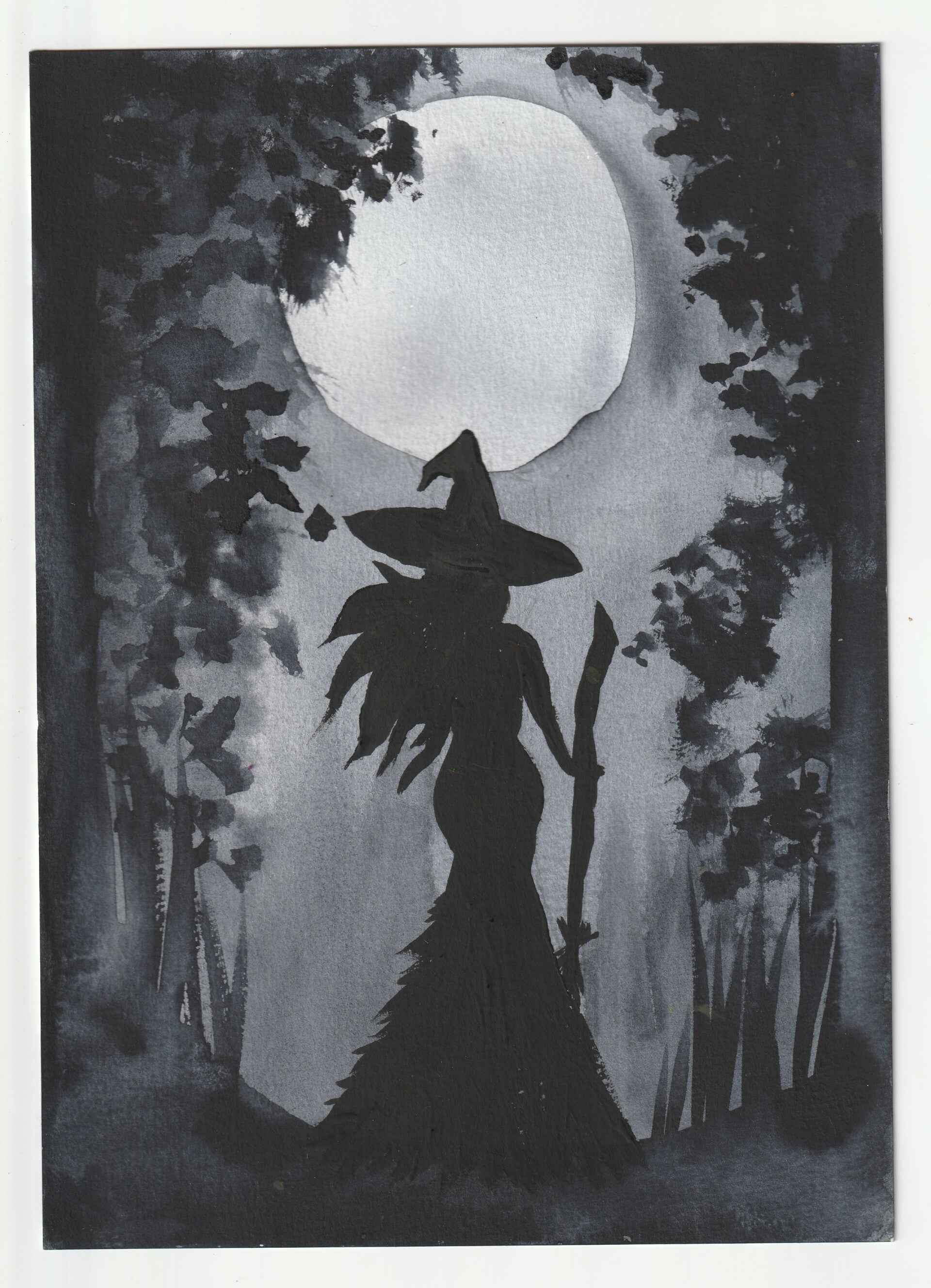 Daarna gingen we aan de gang met heksen. Ik vond een heerlijk thema en heb me uitgeleefd op de tutorial. Maar het leuk is dat je ook je gehele eigen interpretatie kan maken van het thema! Kijk maar eens wat voor heksje er hier op het papier verscheen!