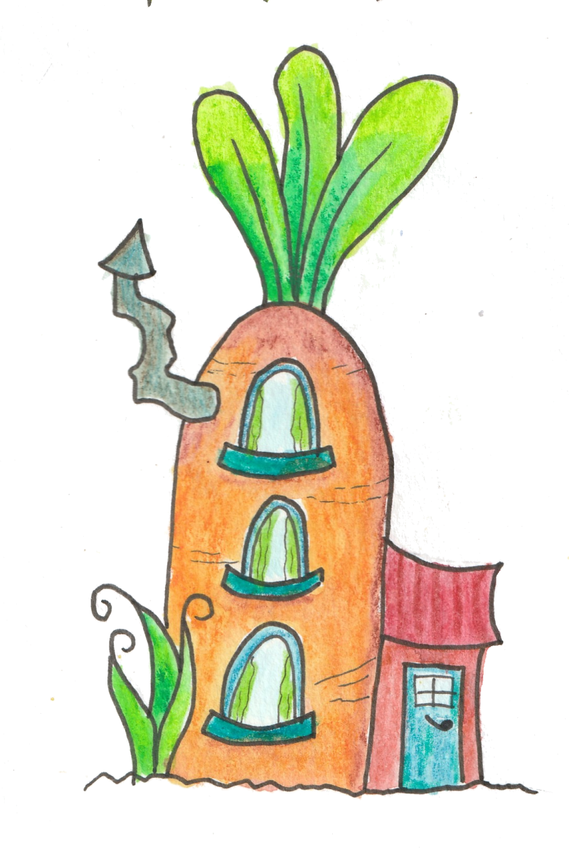 Wat ook leuk is om in je achterhoofd te houden is dat je de ramen, deuren en daken op van alles kunt tekenen. Wat dacht je van een theepot? Of een wortel als huis?